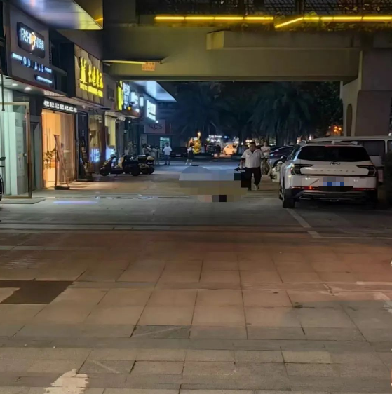 8月2日,记者赶到现场时,事发地点已经被围挡和警戒线封锁,附近商户称事发后他们已暂停营业。物业安保人员在现场维护秩序,警方利用无人机在进行取证工作。