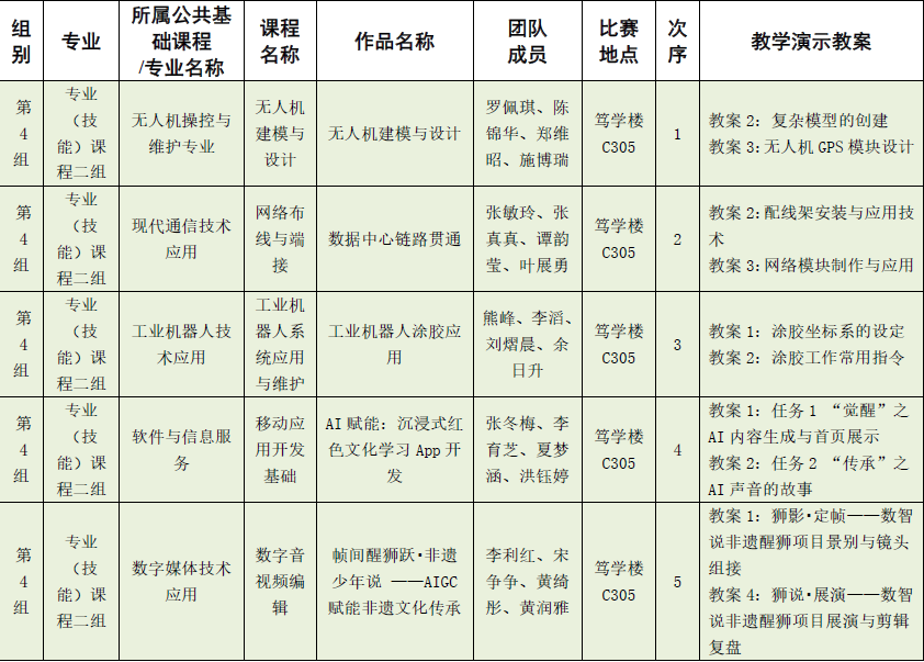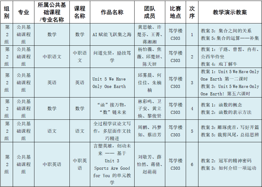 本次比赛设置“公共基础课程组”与“专业(技能)课程组”双赛道,每组再细分1、2两组,形成“基础+技能”“理论+实践”的立体化竞赛格局。公共基础课程组聚焦公共基础课程核心素养培养,专业(技能)课程组则涵盖专业课程基础知识与技能应用领域,全面检验教师教学设计、课堂实施及思政融合能力。