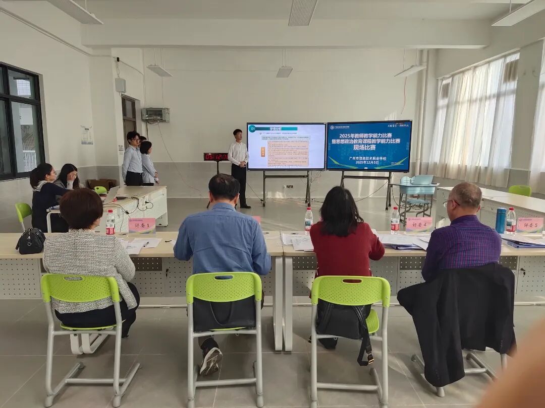 为深化职业教育教学改革,强化教师队伍建设,近日,我校教学能力比赛暨思想政治教育课程教学能力比赛火热开赛。全校22支参赛队伍近百名教师同台竞技,围绕公共基础课程与专业(技能)课程两大领域展开激烈角逐,以赛促教、以赛促研,为职业教育高质量发展注入新动能。